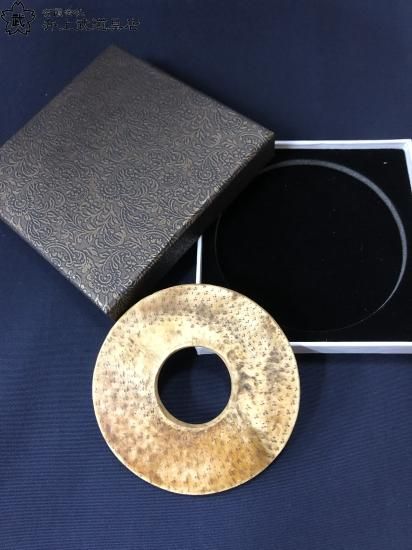 雄のイノシシの皮下脂肪の中でも非常に硬い「ヨロイ」と呼ばれる前肩の部分を使用した鍔になります。「ヨロイ」は弾丸すら通さないと言われる脂質の部位です。