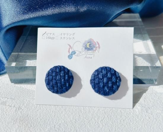 ハンドメイド作家Soraとコラボした藍染生地アクセサリー 𖤐˒˒